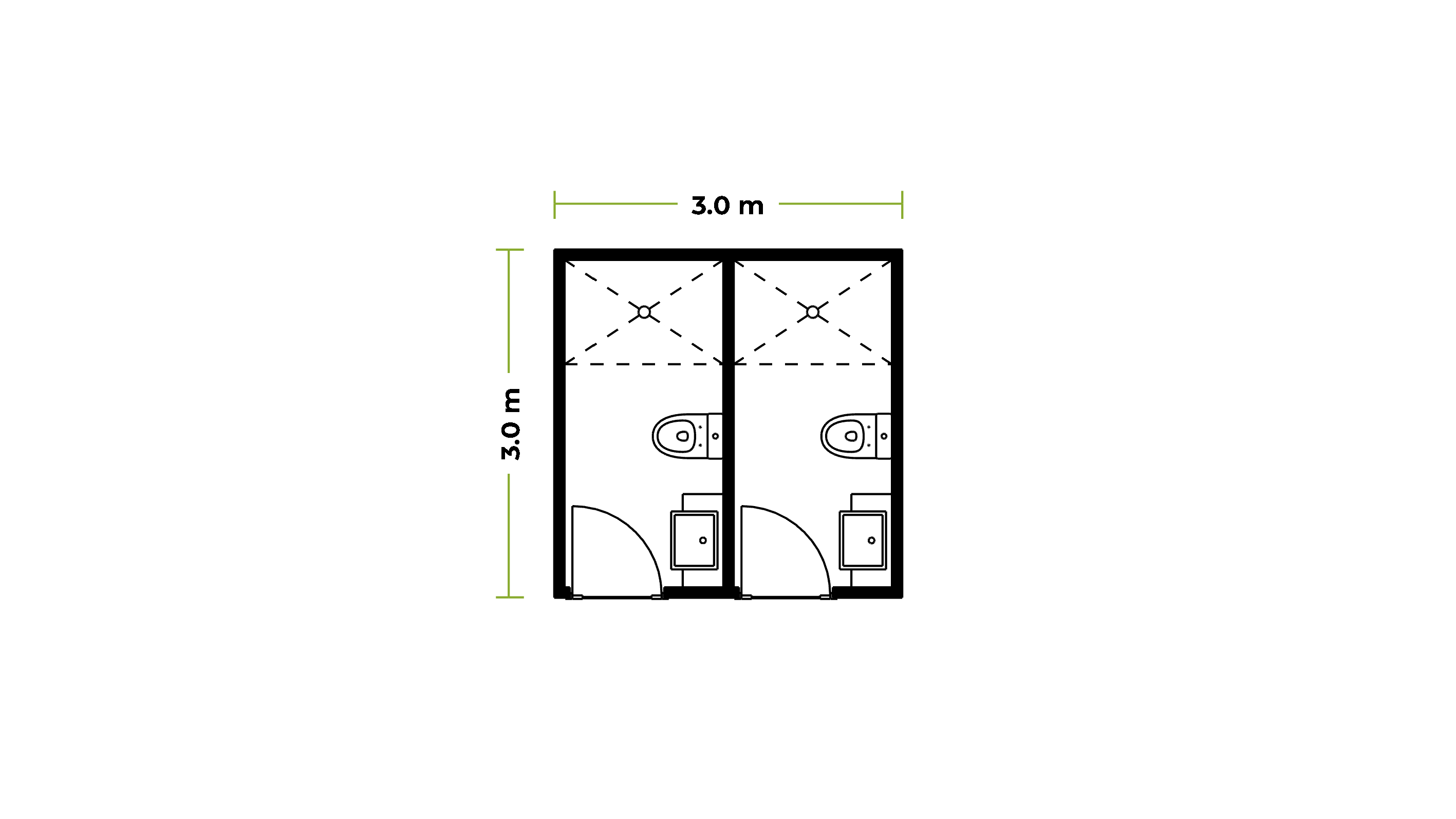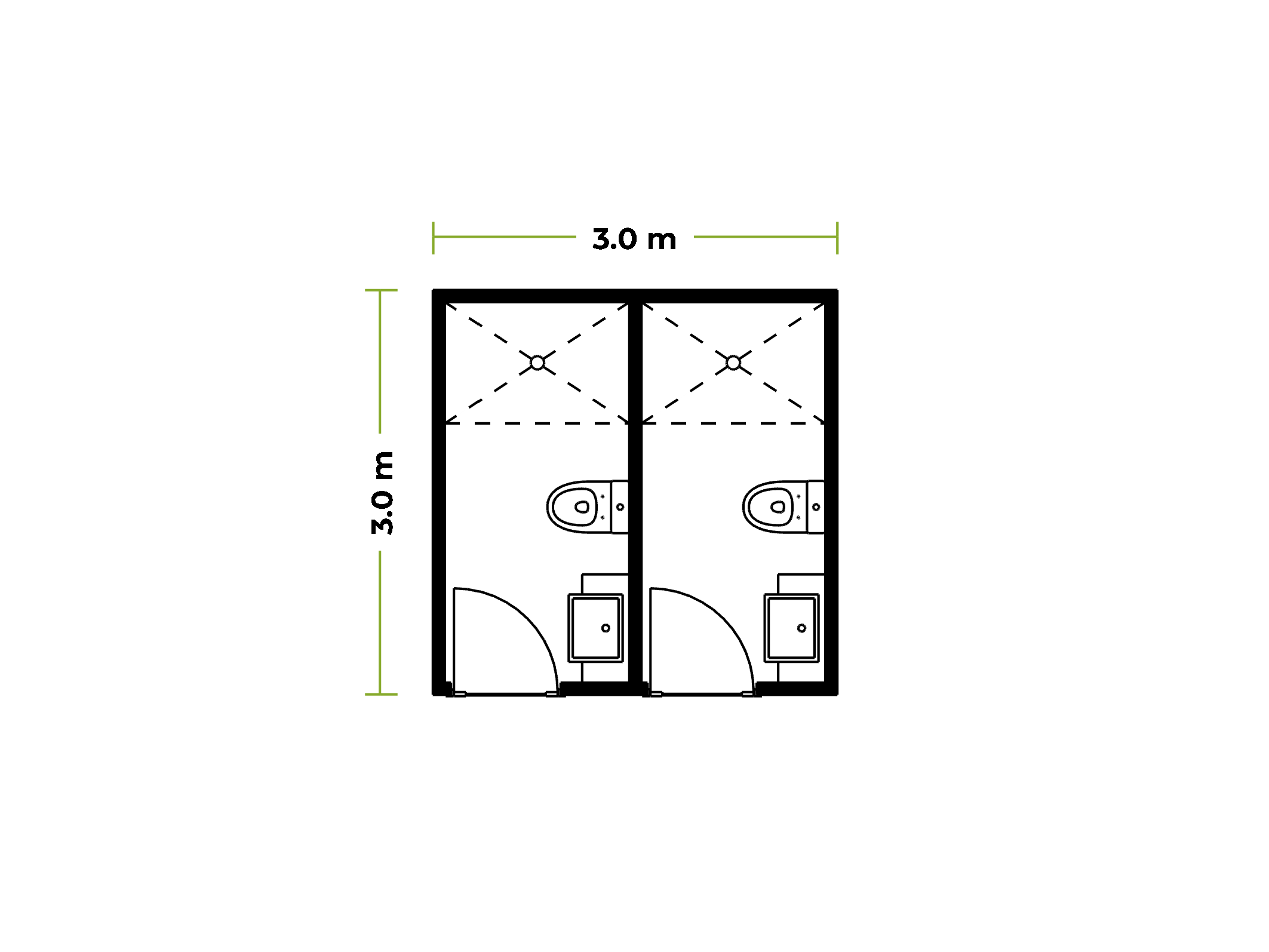 A versatile, compact building fully equipped with two toilets and two showers. Perfect for small sites.