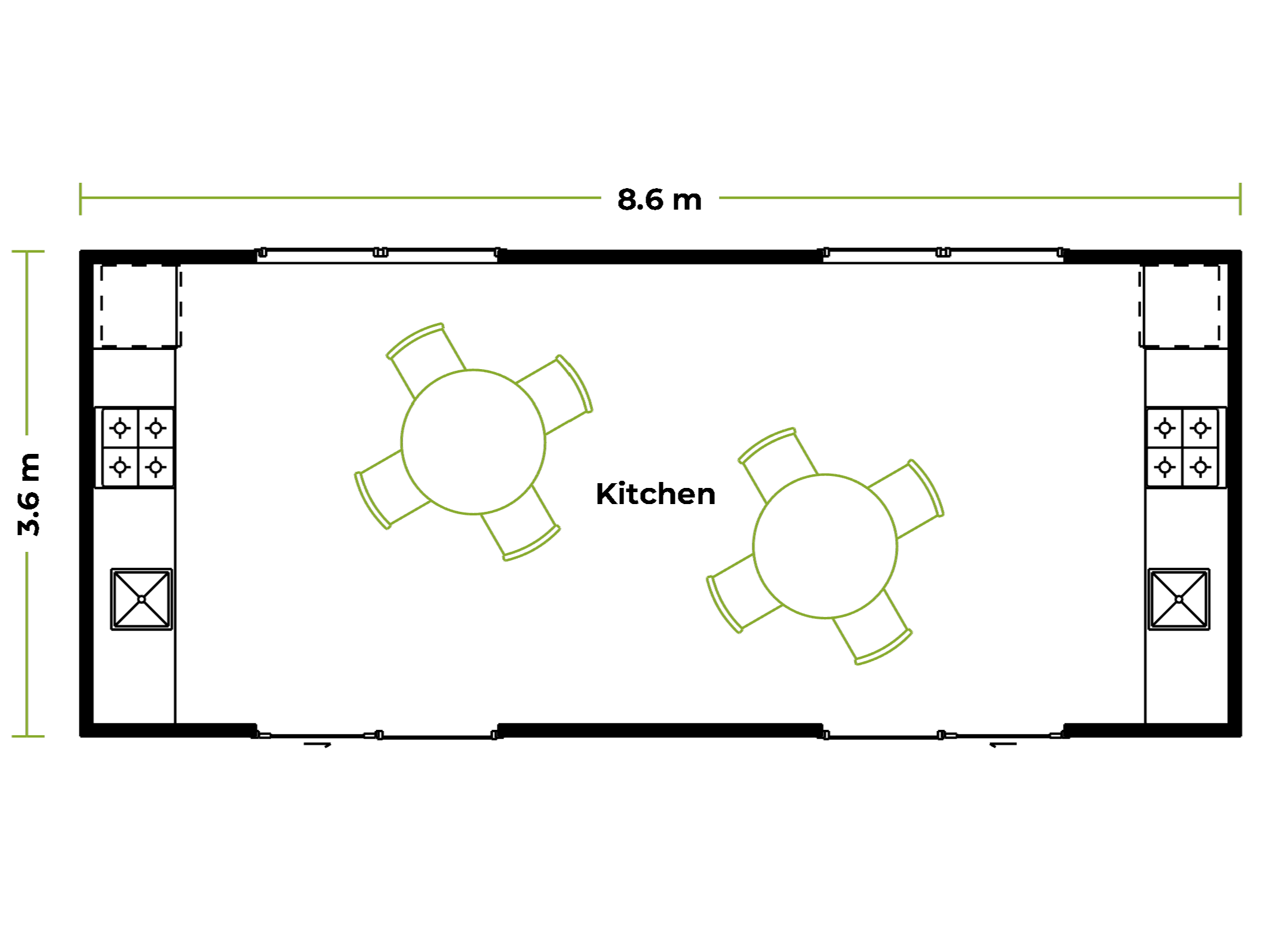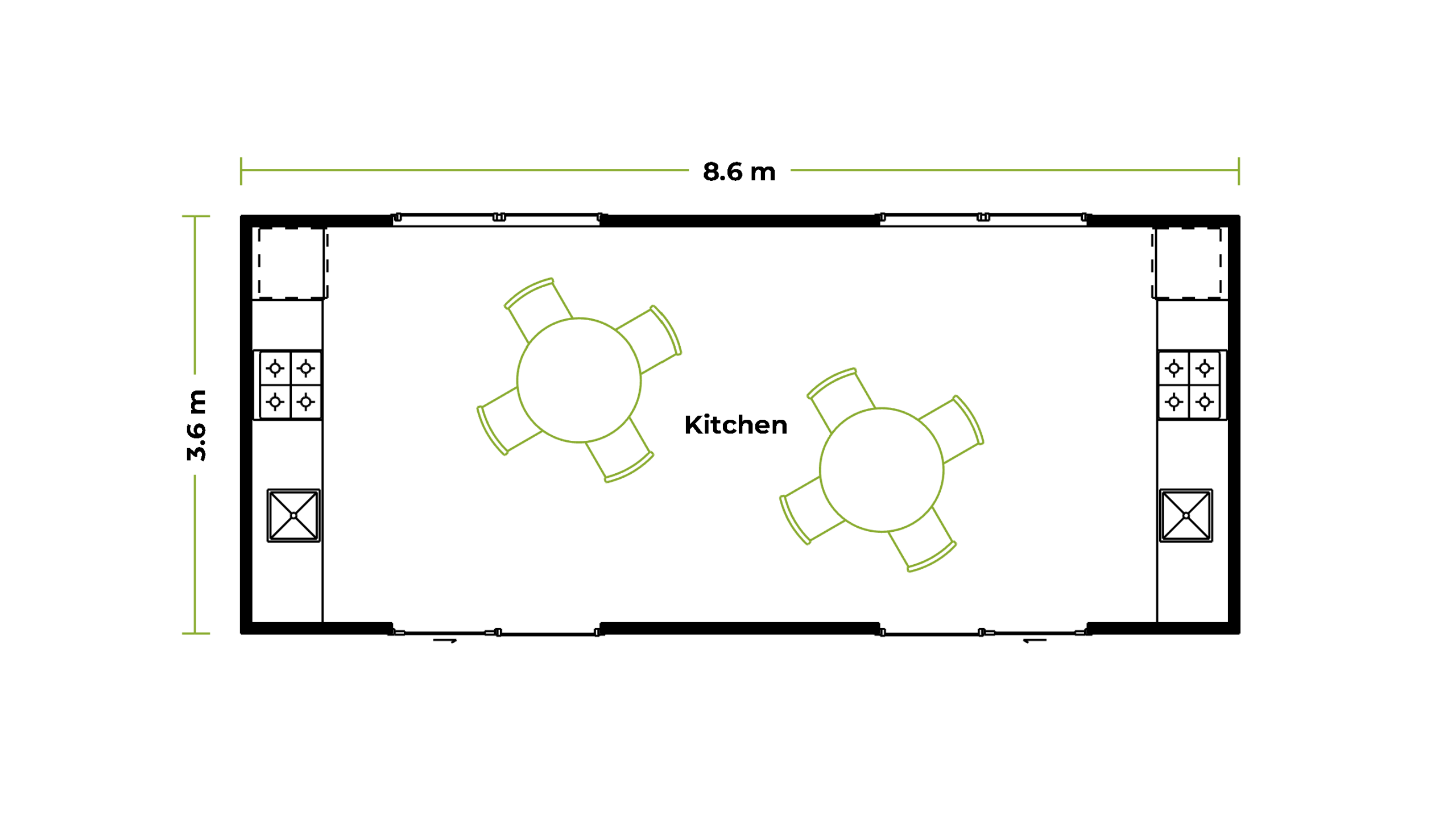 A compact Kitchen and Dining setup for Holiday Parks, Motor Lodges and Campgrounds. Customisation options available  to suit your requirements.